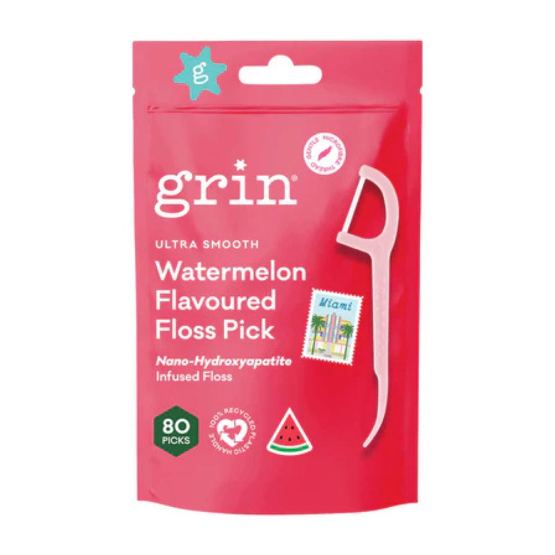 GRIN Ultra Smooth Floss Picks Watermelon Flavoured 80pk